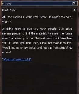 сделать просимую одежду, но пошлет вас к Maid Leikar. Примите квест.